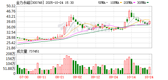 金力永磁是全球钕铁硼永磁材料龙头,已A+H股上市。公司凭借领先的晶界渗透技术,降低重稀土用量并提升磁体性能,具备强大的技术和成本优势。主要业务涵盖新能源汽车、节能空调、风力发电和机器人等领域。产能持续扩张,预计2027年达6万吨。2025年前三季度营收53.48亿元,税后利润5.24亿元,毛利率回升。由于市场需求旺盛,目前人形机器人及低空飞行器等新兴领域已实现了小批量交付,业绩也在不断的增长中,短期内有望刺激股价的上升