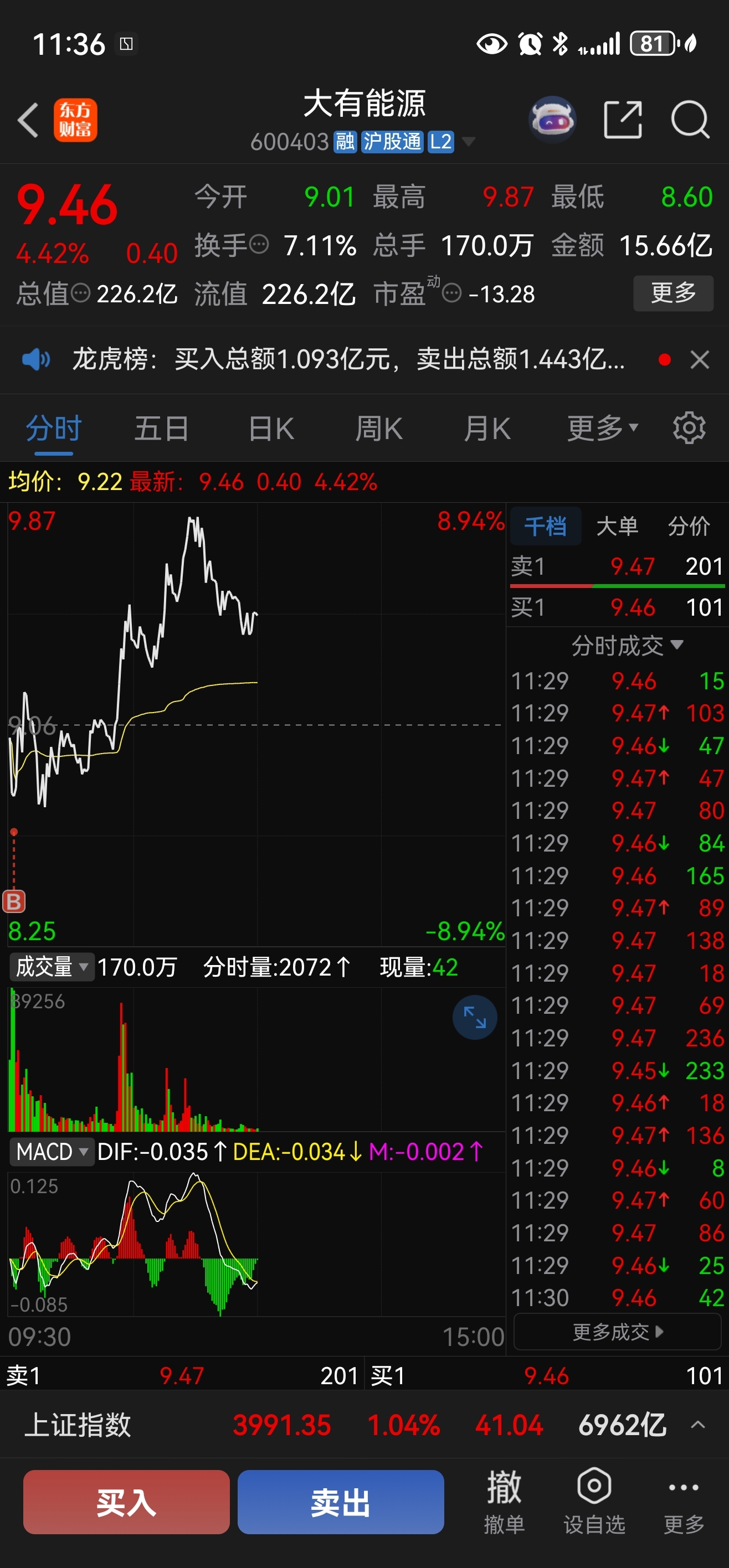 $大有能源(SH600403)$ 今日开仓:作为短期最高板龙头,上周五触及跌停后迅速拉起,今日平开,资金做多力量持续,逢低建底仓开始动态操作。看看是否具备跨年妖的潜质。
