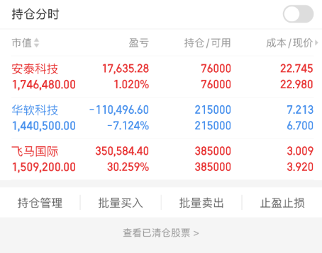 飞马国际002210:统一大市场+控制权变更。飞马国际昨天把仓位接了回来,暂时把3.80作为止损价了;如果不破就准备继续,跌破就准备不玩了。