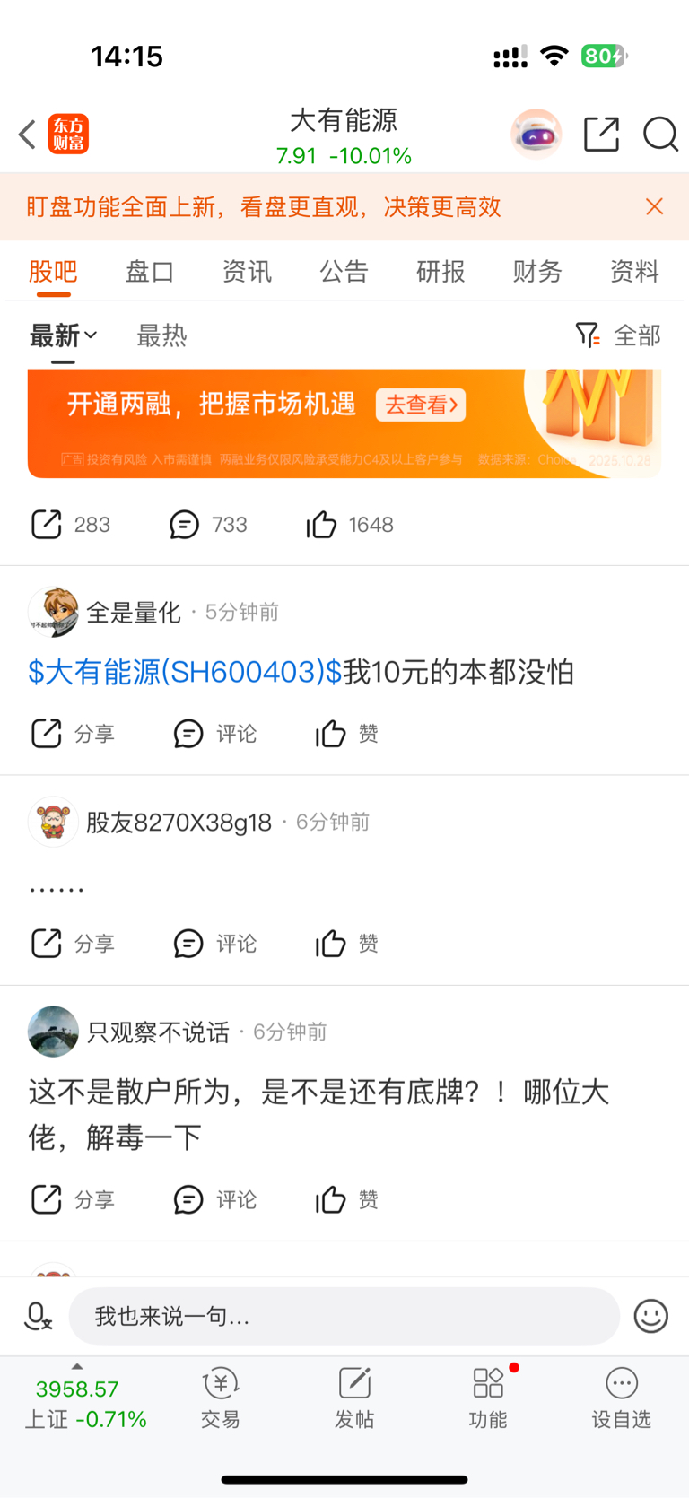 $大有能源(SH600403)$ 这些拖一个自选股没有 一直唱多 兄弟们别进