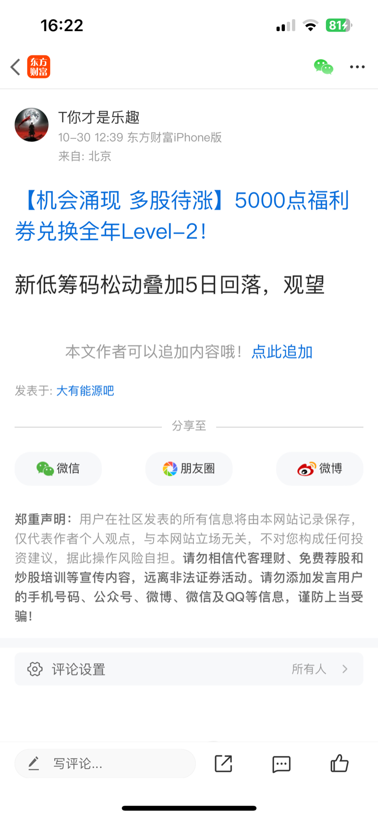 温馨提示: 1.根据《证券法》规定,禁止编造、传播虚假信息或者误导性信息,扰乱证券市场;2.用户在本社区发表的所有资料、言论等仅代表个人观点,与本网站立场无关,不对您构成任何投资建议。用户应基于自己的独立判断,自行决定证券投资并承担相应风险。《东方财富社区管理规定》