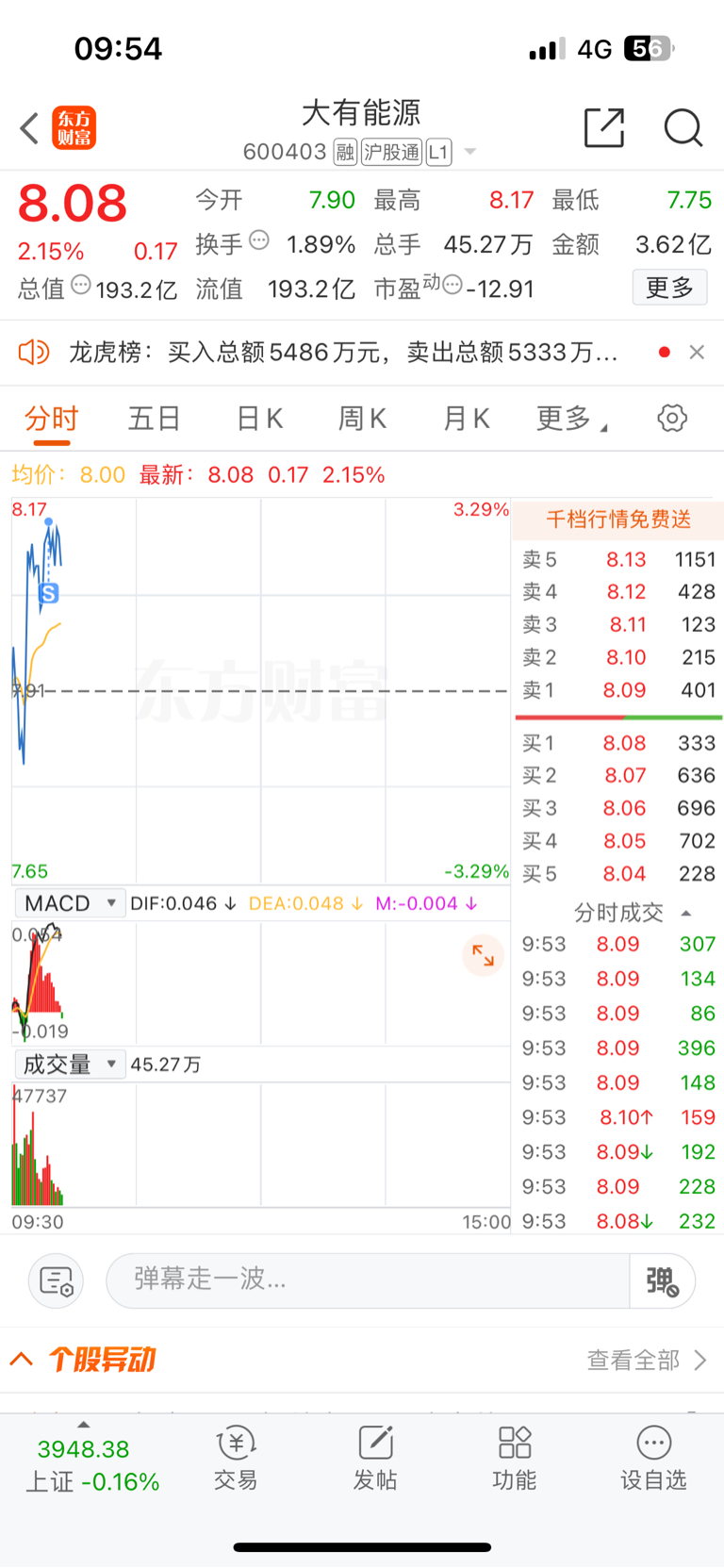 $大有能源(SH600403)$ 板块都追不上,被动拉,走人