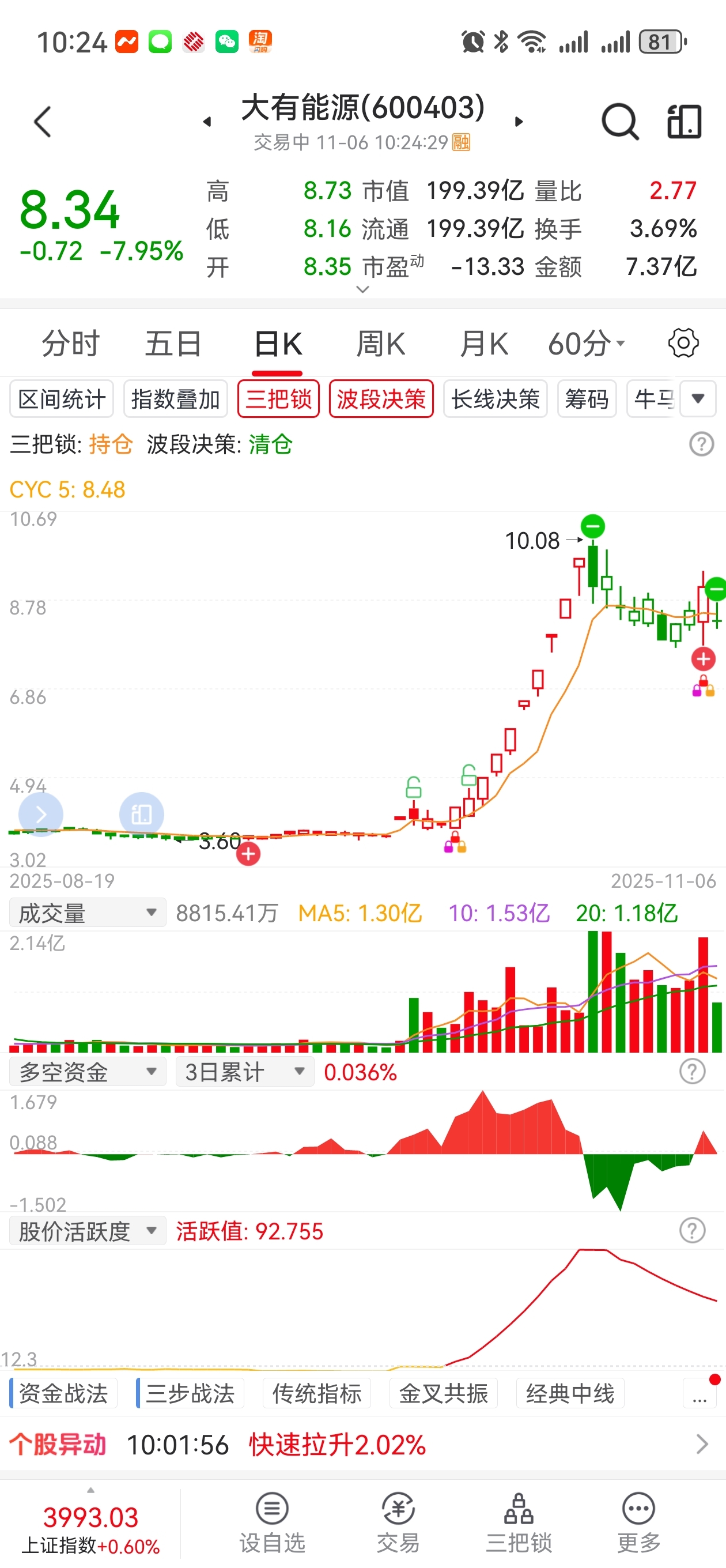 $大有能源(SH600403)$ 玩我呢 昨天提示全仓猛干,今天提示清仓