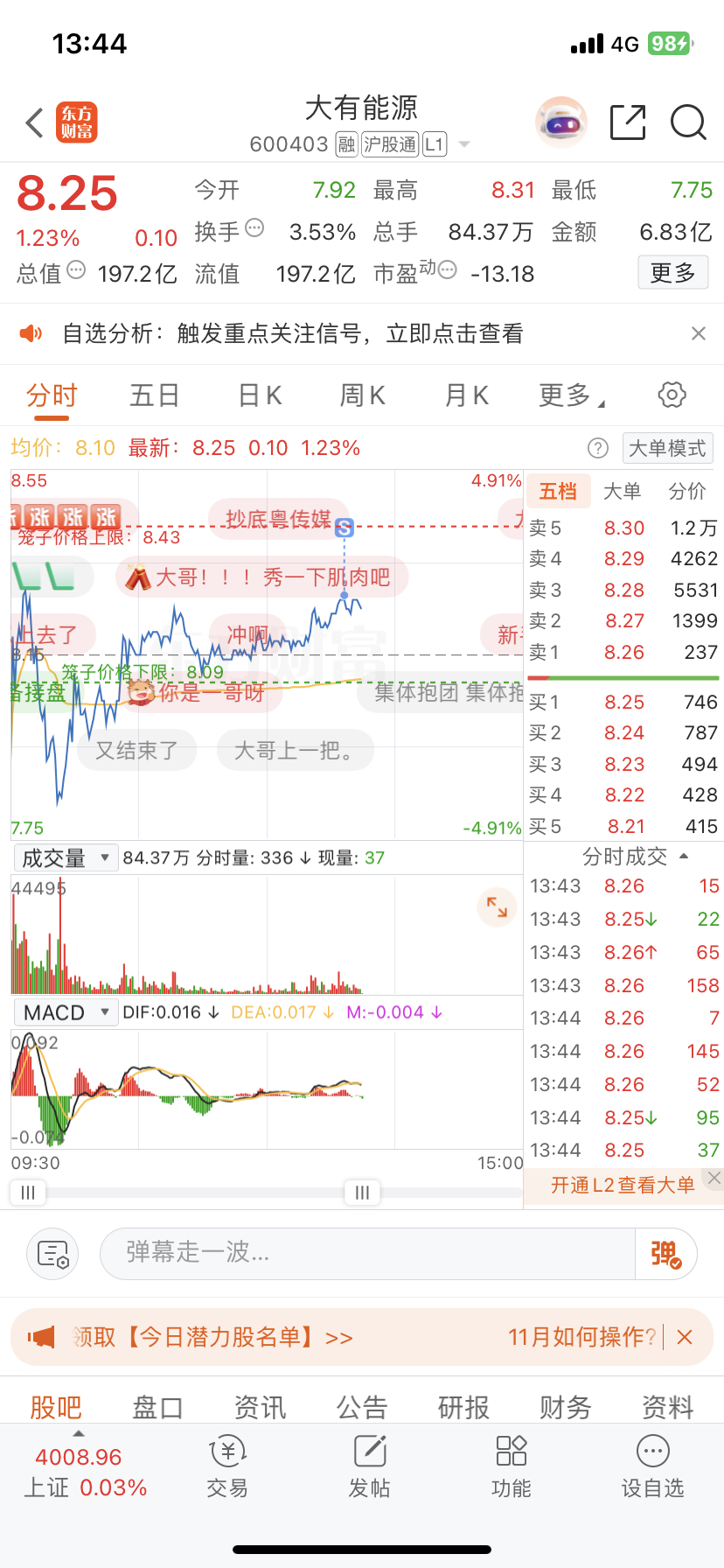 $大有能源(SH600403)$ 走了 冒着跌停的风险 昨天进来的 赚这么点 亏得慌