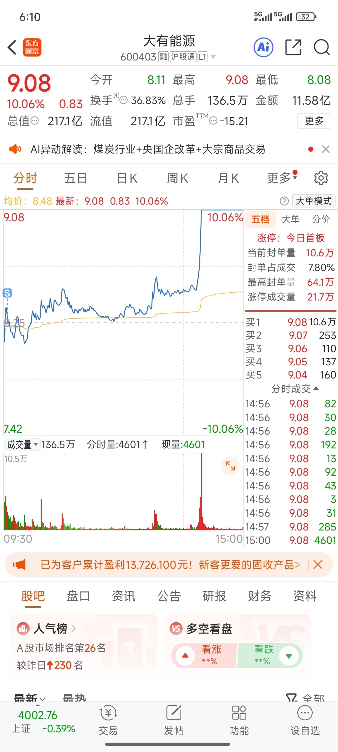 $大有能源(SH600403)$ 主力你也得让我吃几回肉啊,不要每次都这样搞