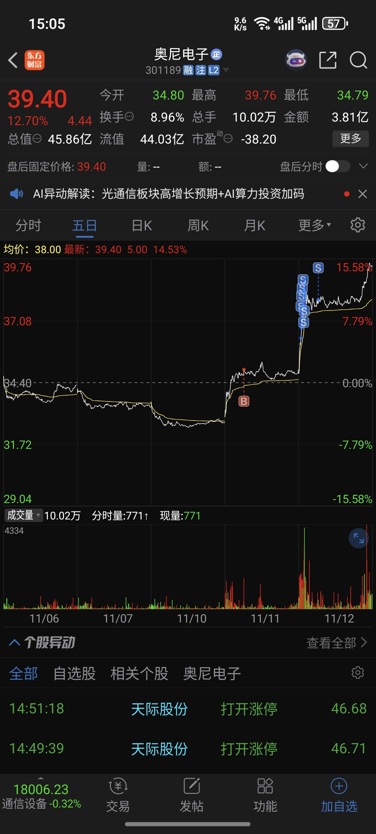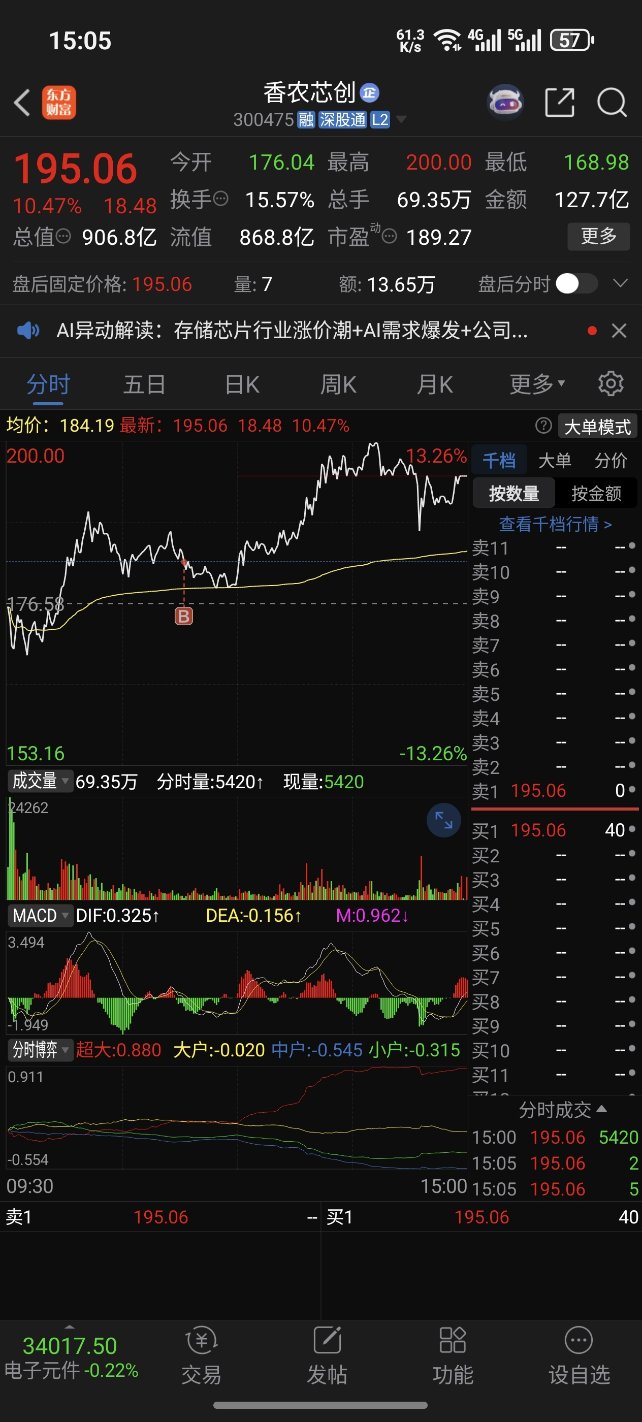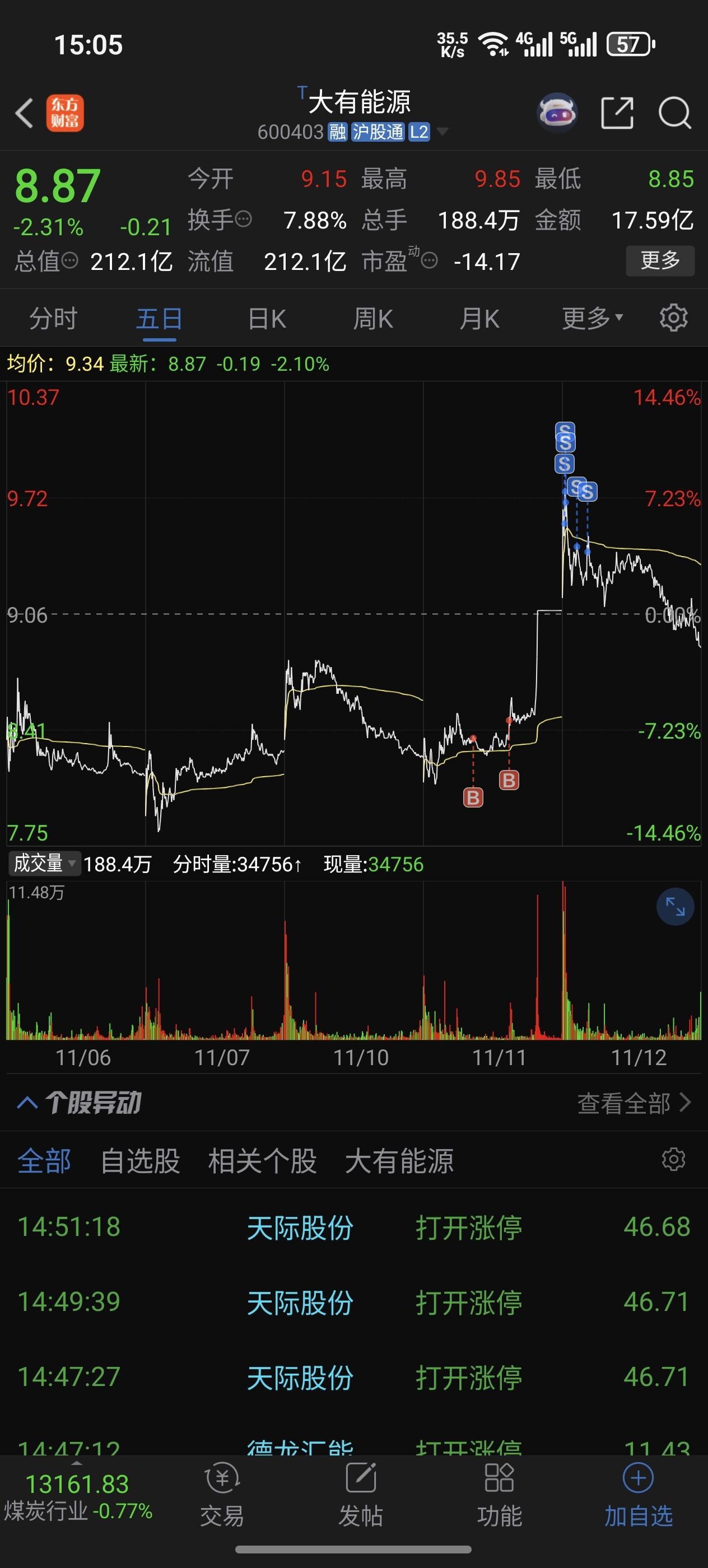 $大有能源(SH600403)$ $奥尼电子(SZ301189)$ $香农芯创(SZ300475)$ 最近打板是真难做,没买到的狂涨买到的红都不红一下,还是半路舒服,隔三差五的还能抓个涨停玩一玩,今天下午本来也能在4%的时候抓个半路板玩一玩的,可惜手里资金都用光了,看着它拉板干着急