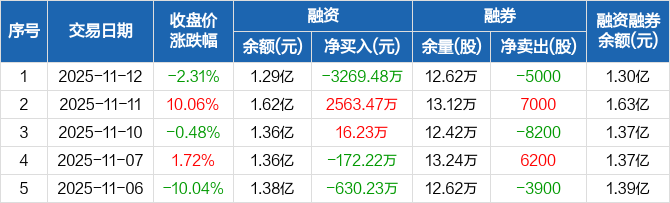 大有能源:融资净偿还3269.48万元,融资余额1.29亿元(11-12)