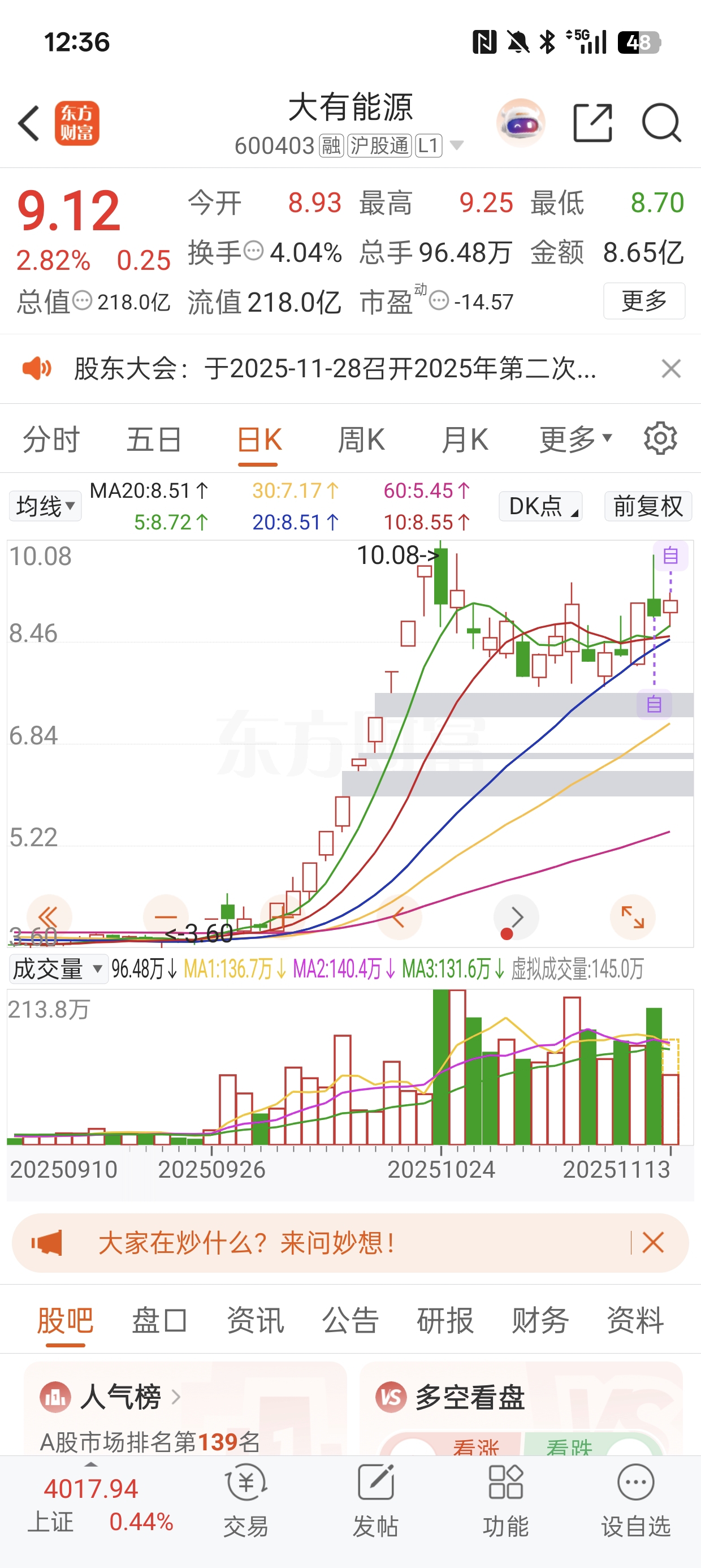 $大有能源(SH600403)$ 别涨了,等我明天过来