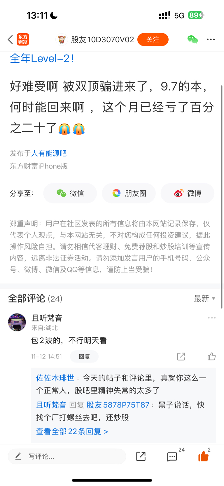 温馨提示: 1.根据《证券法》规定,禁止编造、传播虚假信息或者误导性信息,扰乱证券市场;2.用户在本社区发表的所有资料、言论等仅代表个人观点,与本网站立场无关,不对您构成任何投资建议。用户应基于自己的独立判断,自行决定证券投资并承担相应风险。《东方财富社区管理规定》