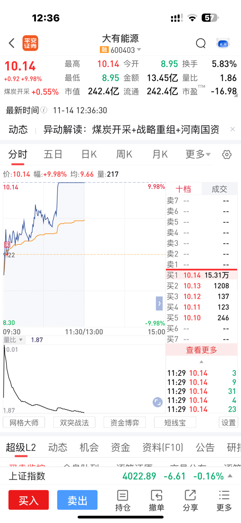 $大有能源(SH600403)$ 妇女主任今天低开亏了 卖了 买大有 还好搞回来