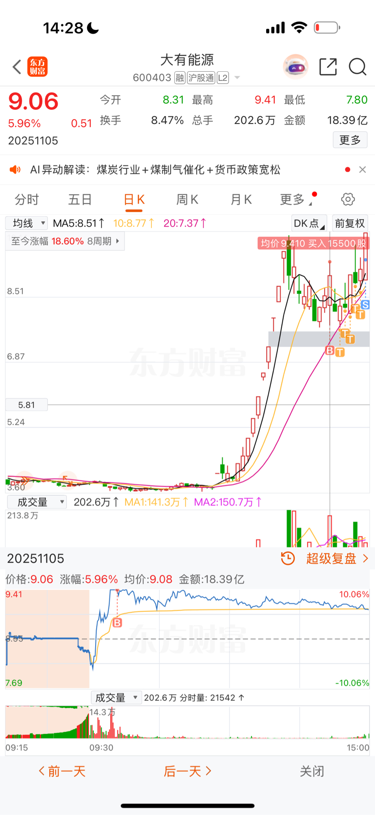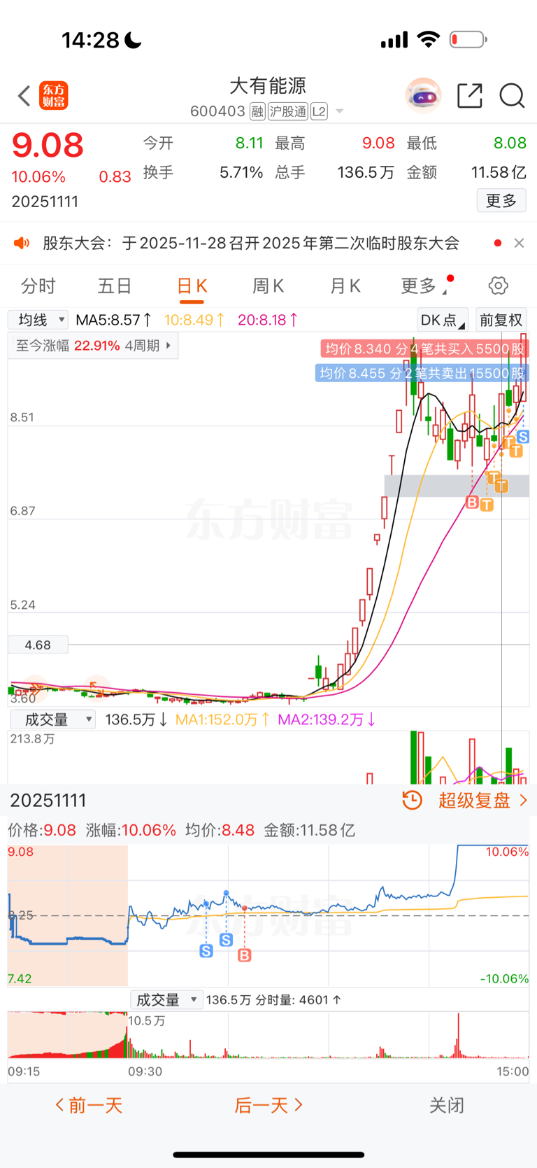 $大有能源(SH600403)$ 我和它缘分浅。。最高时亏19%,,硬生生T回来了,早上回本就卖了、赚了几百块,,中间还有一次条件单差1分没成交,导致仓位丢了一大半,要不然早赚了,心酸,兄弟们,你们玩吧,我和它缘分浅。。