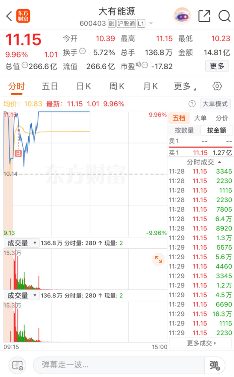 $大有能源(SH600403)$ 恭喜上车的朋友们,吃上一板