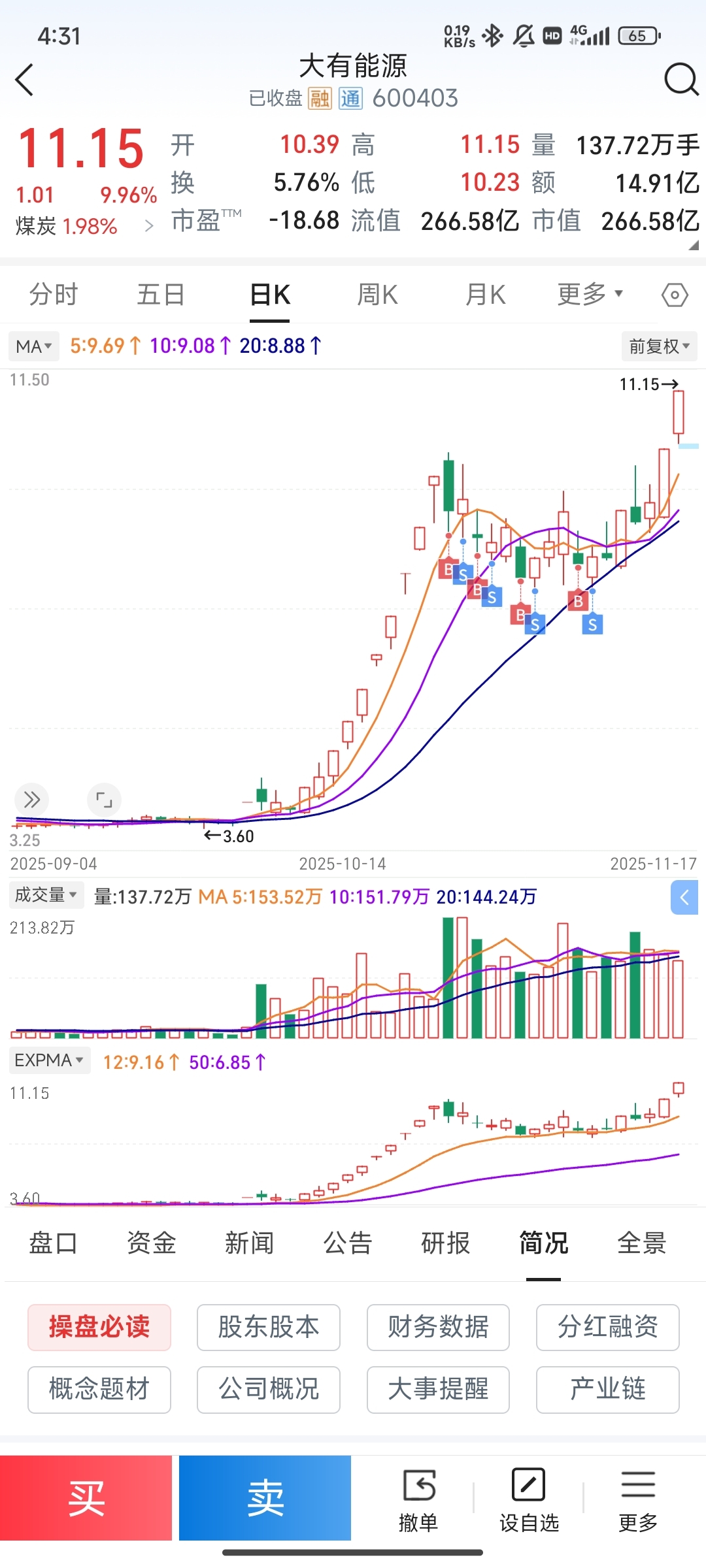 $大有能源(SH600403)$