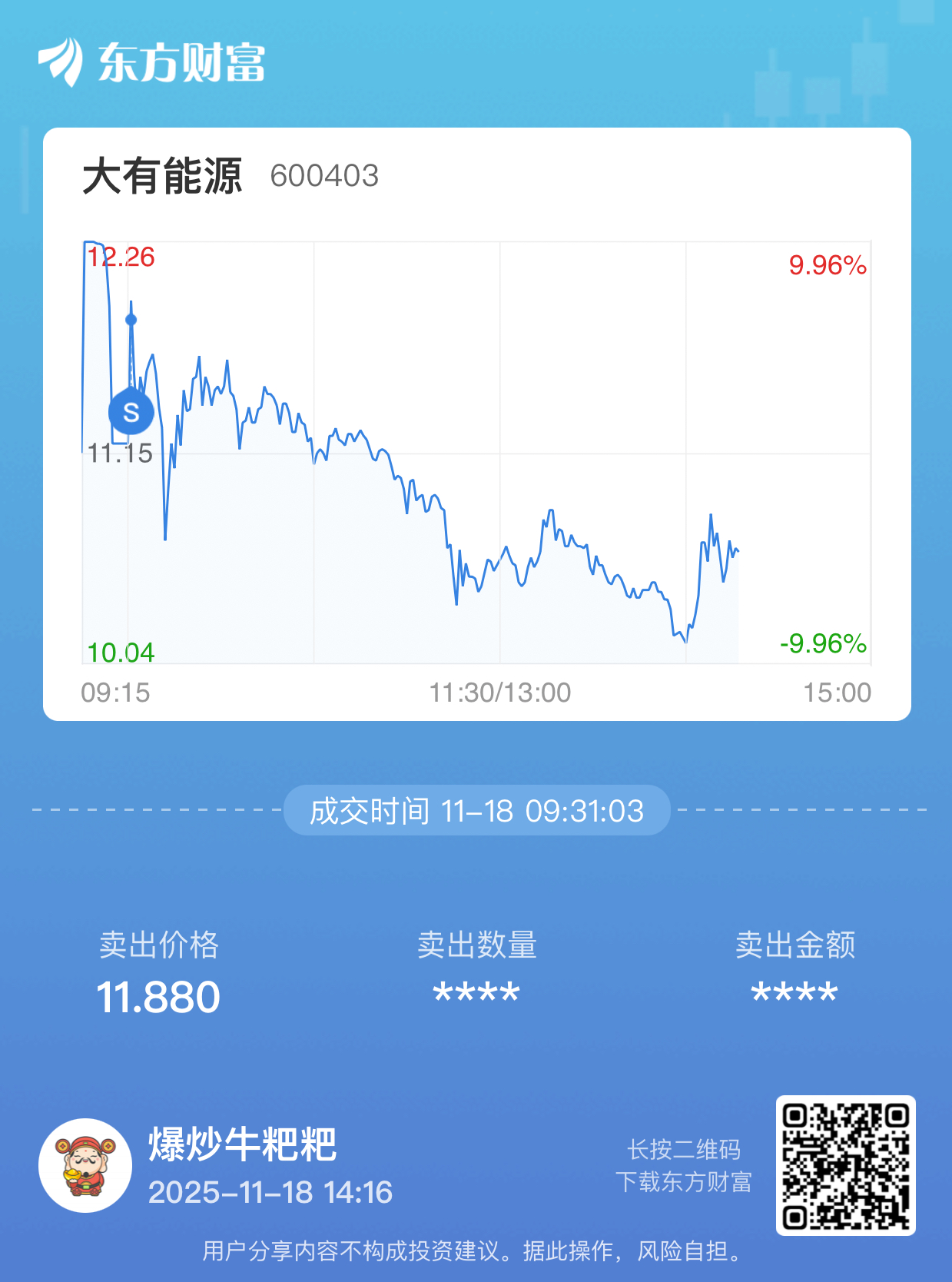$大有能源(SH600403)$ 舒服暂时先不玩了,管住手