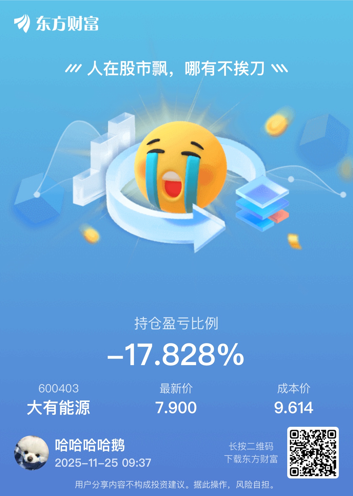 温馨提示: 1.根据《证券法》规定,禁止编造、传播虚假信息或者误导性信息,扰乱证券市场;2.用户在本社区发表的所有资料、言论等仅代表个人观点,与本网站立场无关,不对您构成任何投资建议。用户应基于自己的独立判断,自行决定证券投资并承担相应风险。《东方财富社区管理规定》