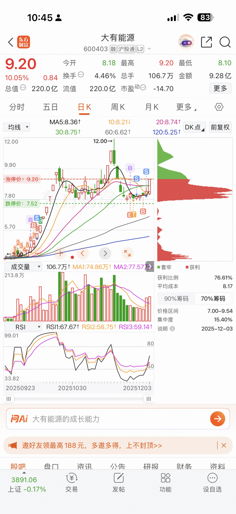 $大有能源(SH600403)$ 你大ye的,我不卖,你不涨是吧