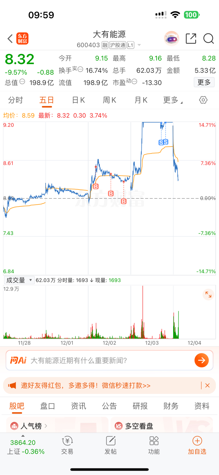 $大有能源(SH600403)$ 哎呀妈呀 还好还好