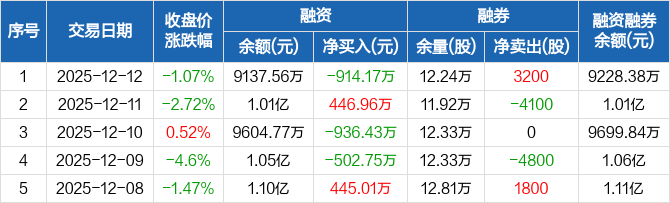 大有能源:融资净偿还914.17万元,融资余额9137.56万元(12-12)