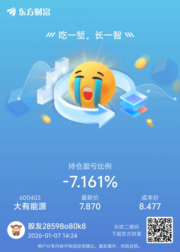 温馨提示: 1.根据《证券法》规定,禁止编造、传播虚假信息或者误导性信息,扰乱证券市场;2.用户在本社区发表的所有资料、言论等仅代表个人观点,与本网站立场无关,不对您构成任何投资建议。用户应基于自己的独立判断,自行决定证券投资并承担相应风险。《东方财富社区管理规定》