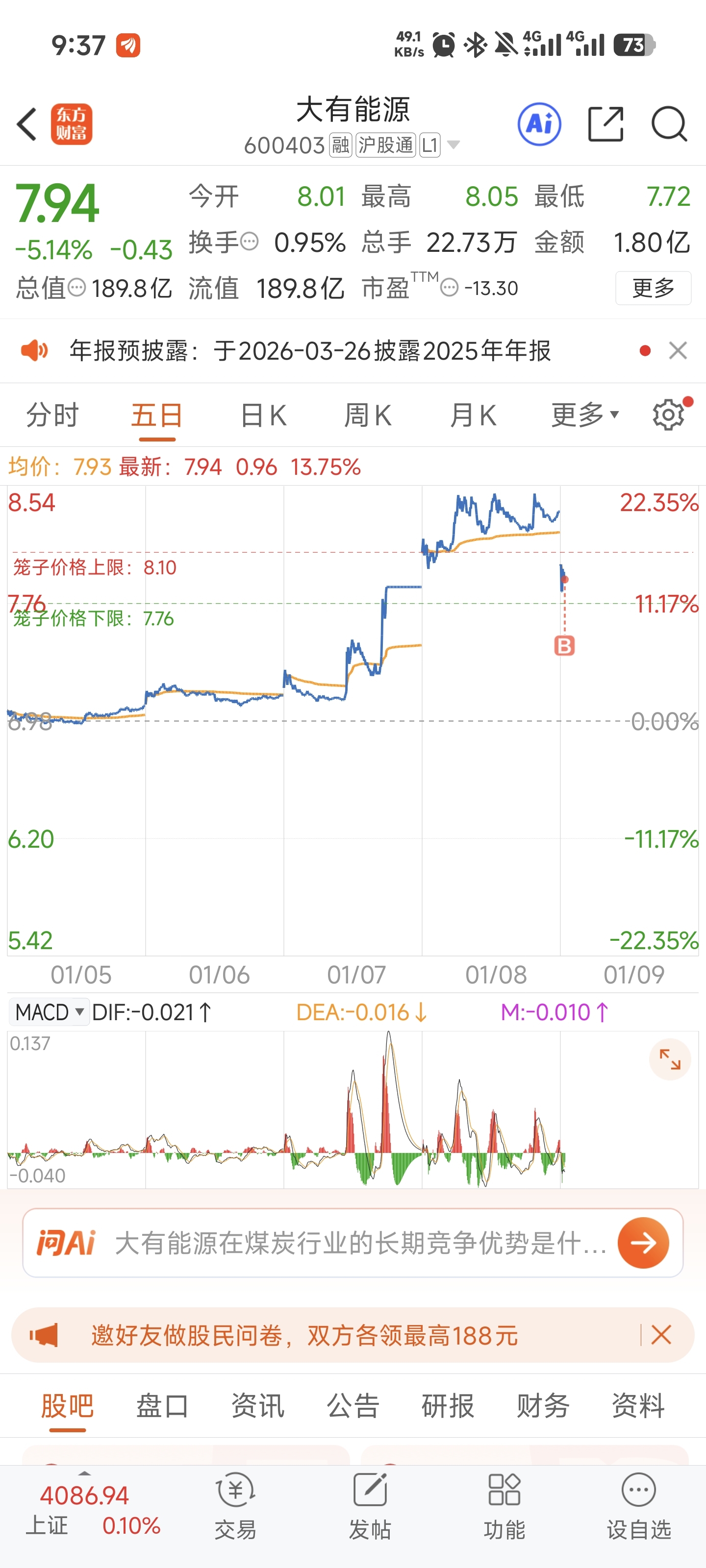 $大有能源(SH600403)$ 大盘也该回调了,下周涨停