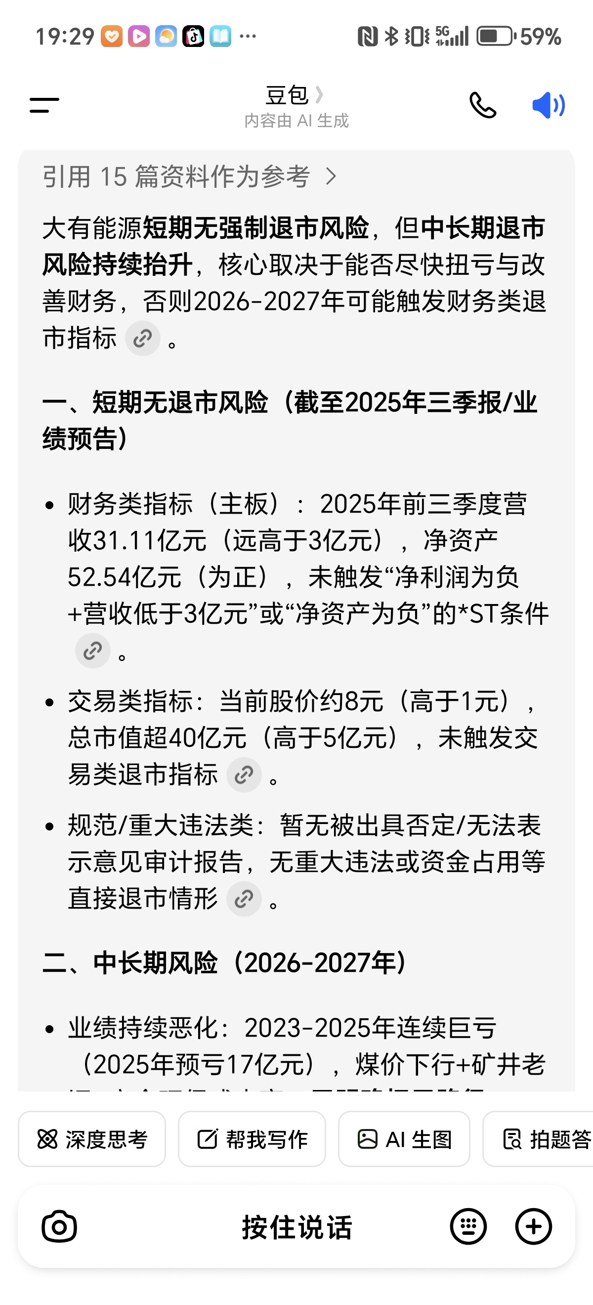 本来我是唱空的,但是看到有些人在说大有明天要一字跌还有的说会退市,看到你们这些2