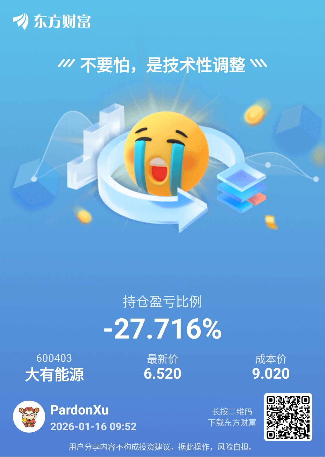 温馨提示: 1.根据《证券法》规定,禁止编造、传播虚假信息或者误导性信息,扰乱证券市场;2.用户在本社区发表的所有资料、言论等仅代表个人观点,与本网站立场无关,不对您构成任何投资建议。用户应基于自己的独立判断,自行决定证券投资并承担相应风险。《东方财富社区管理规定》