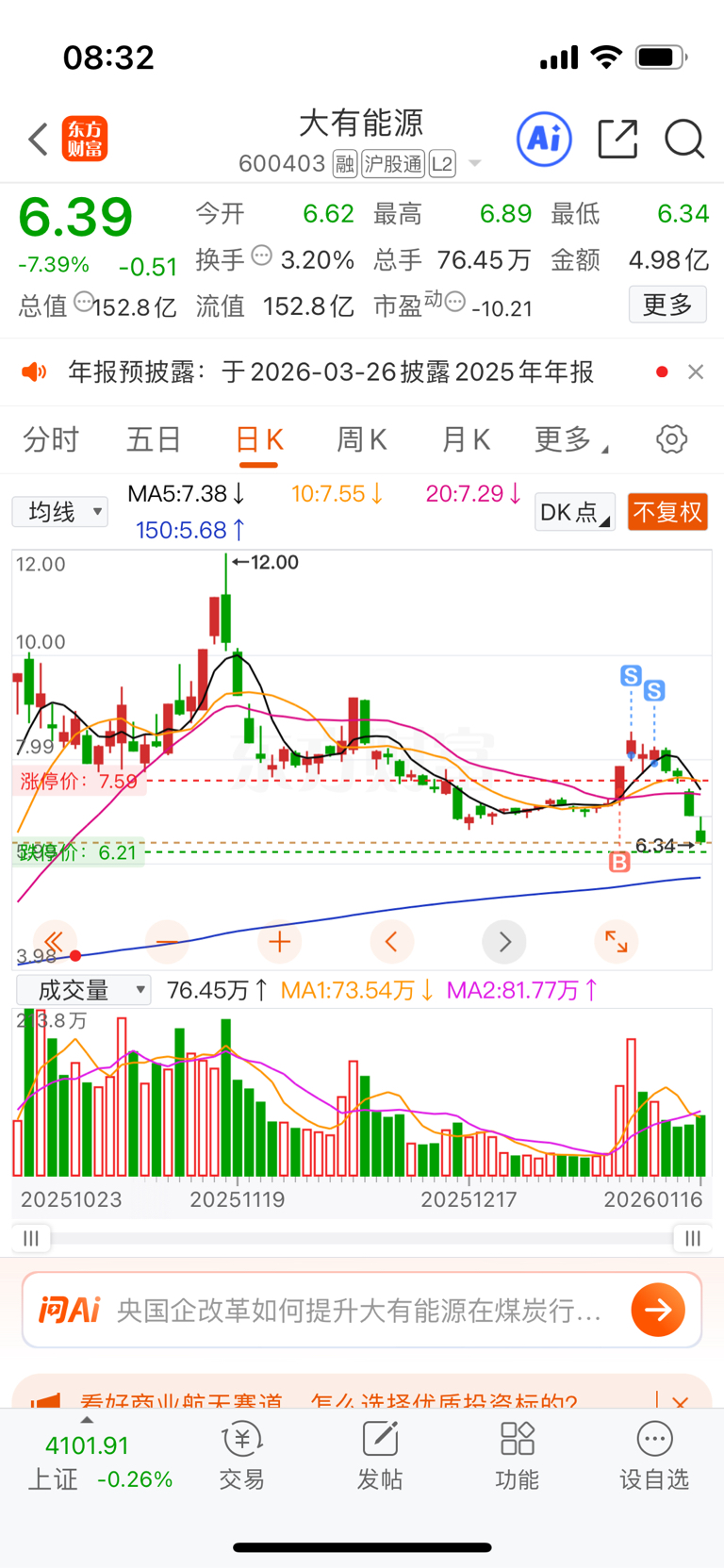 $大有能源(SH600403)$ 俺就知道不能格局#炒股日记#