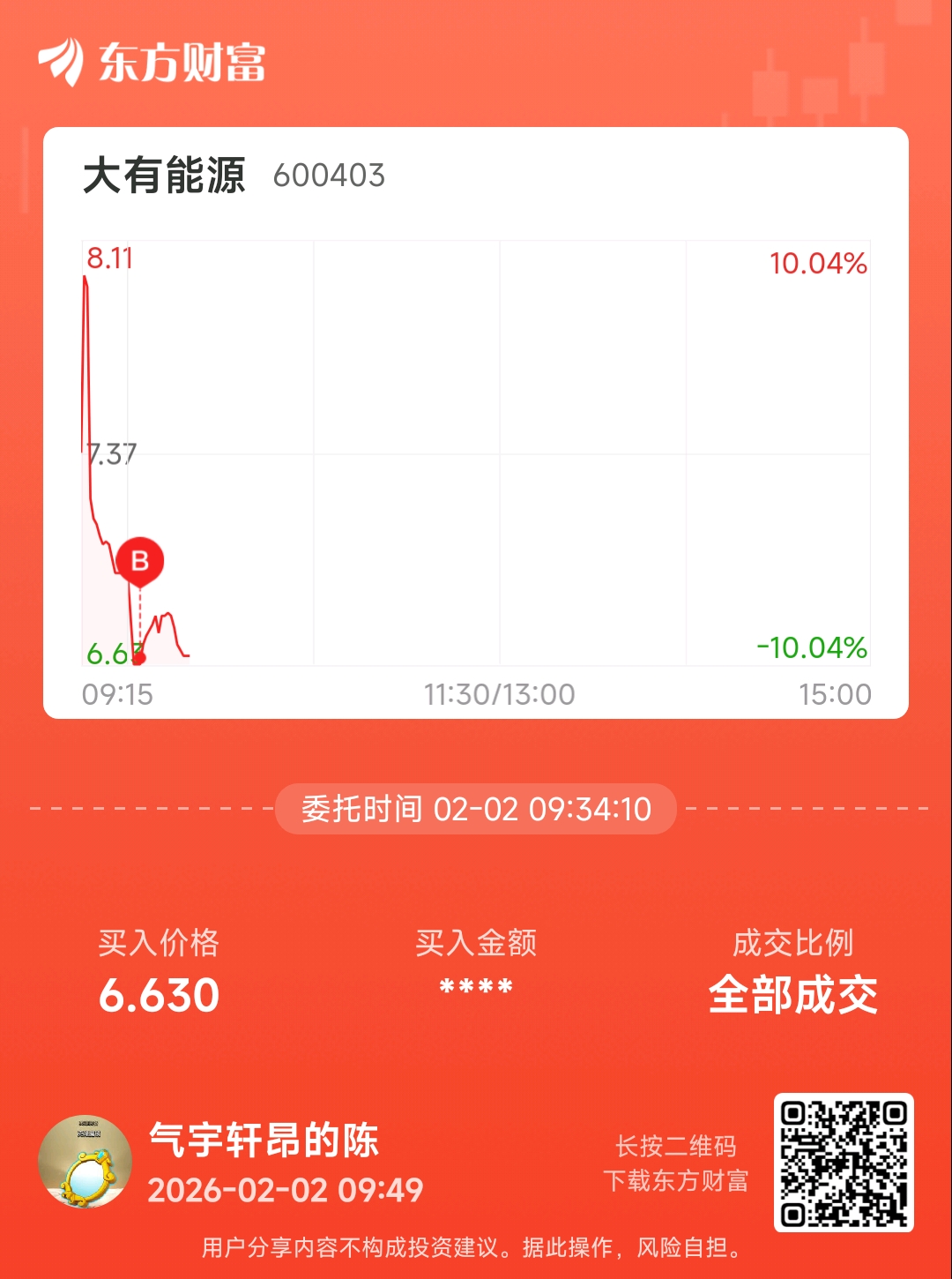 温馨提示: 1.根据《证券法》规定,禁止编造、传播虚假信息或者误导性信息,扰乱证券市场;2.用户在本社区发表的所有资料、言论等仅代表个人观点,与本网站立场无关,不对您构成任何投资建议。用户应基于自己的独立判断,自行决定证券投资并承担相应风险。《东方财富社区管理规定》