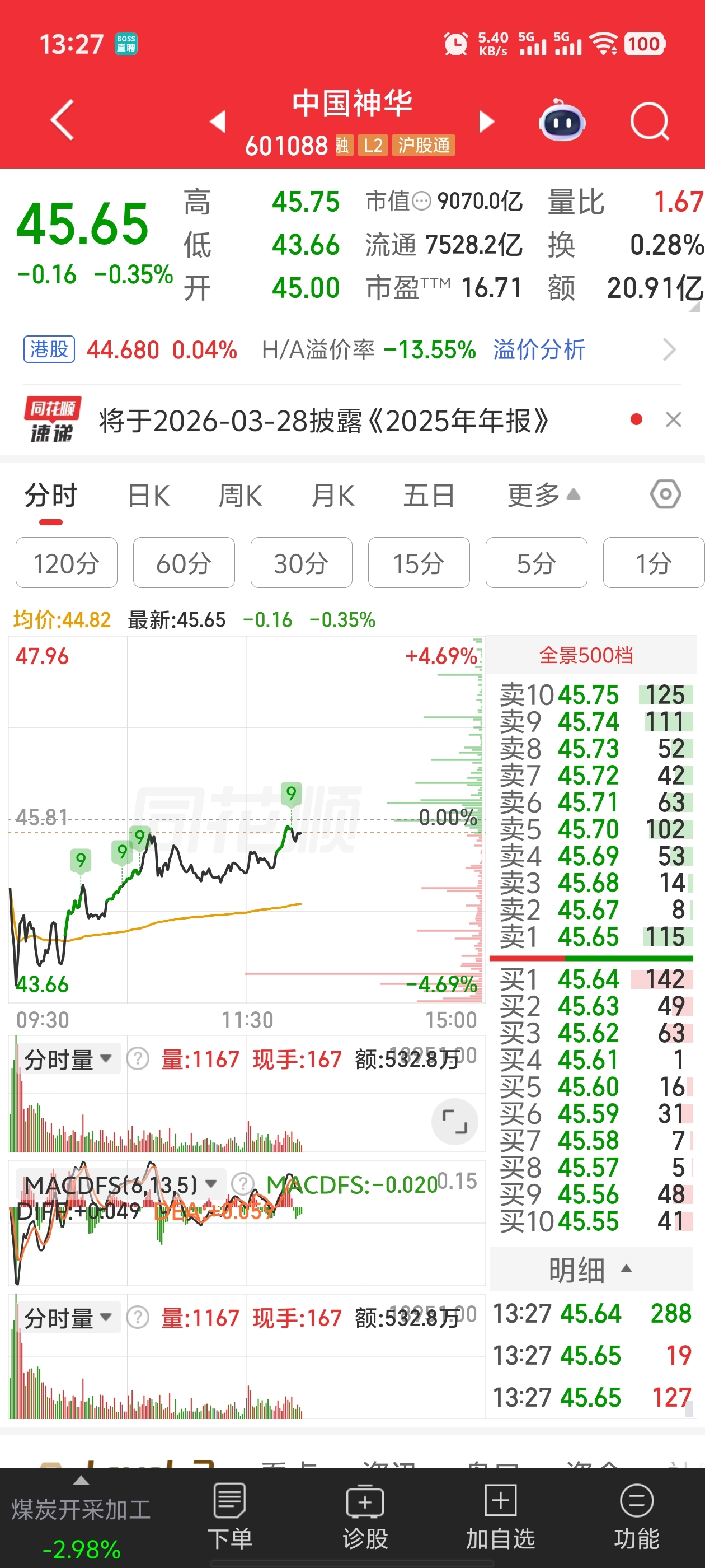 中国神华和中煤能源都要拉红了