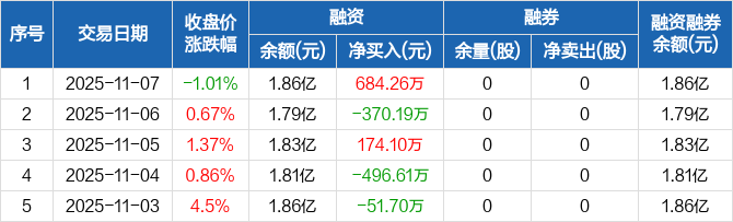 动力源:融资净买入684.26万元,融资余额1.86亿元(11-07)