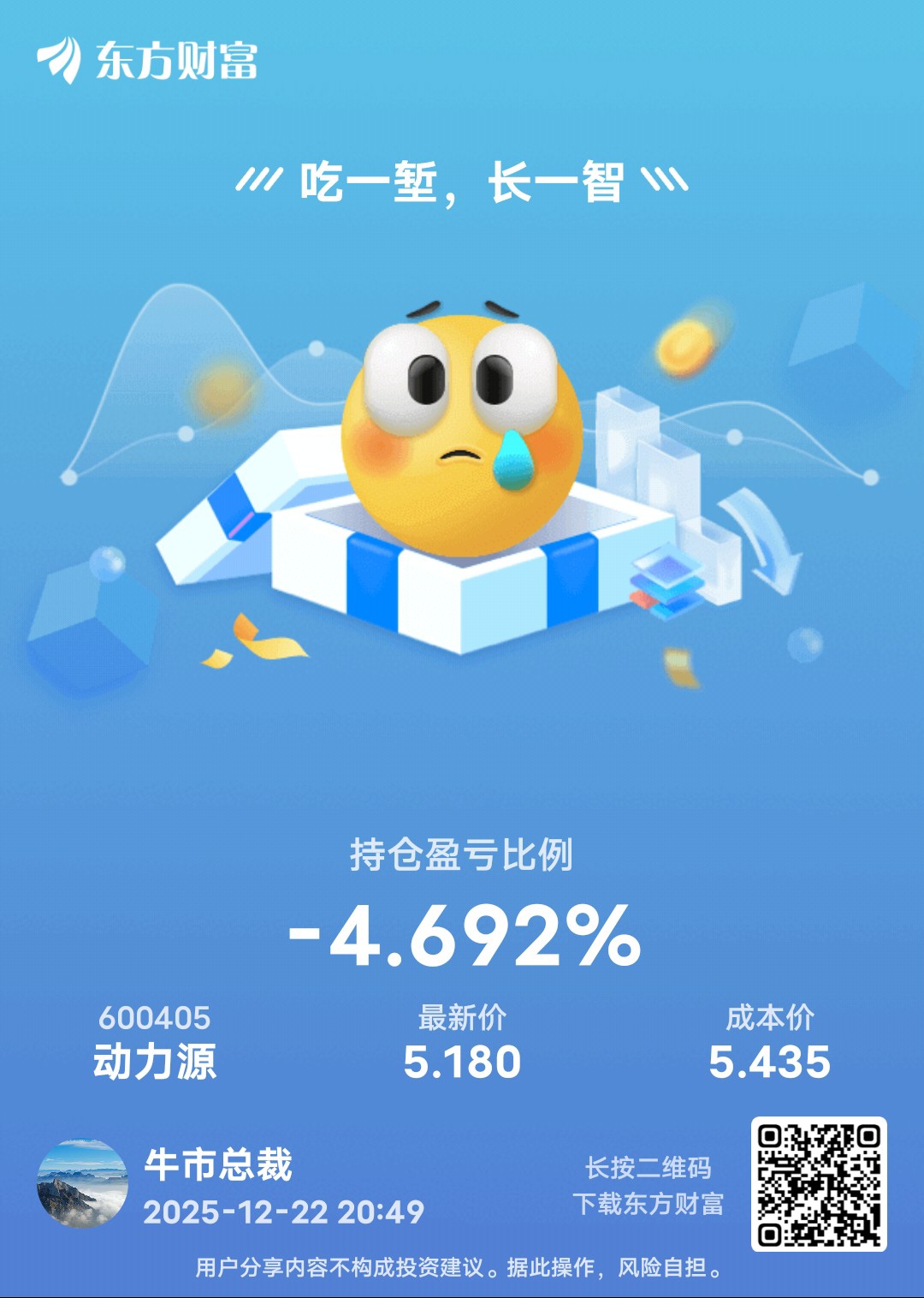 温馨提示: 1.根据《证券法》规定,禁止编造、传播虚假信息或者误导性信息,扰乱证券市场;2.用户在本社区发表的所有资料、言论等仅代表个人观点,与本网站立场无关,不对您构成任何投资建议。用户应基于自己的独立判断,自行决定证券投资并承担相应风险。《东方财富社区管理规定》