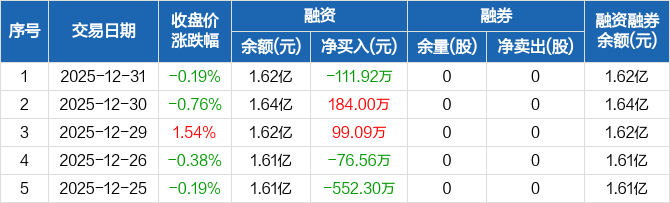 动力源:融资净偿还111.92万元,融资余额1.62亿元(12-31)
