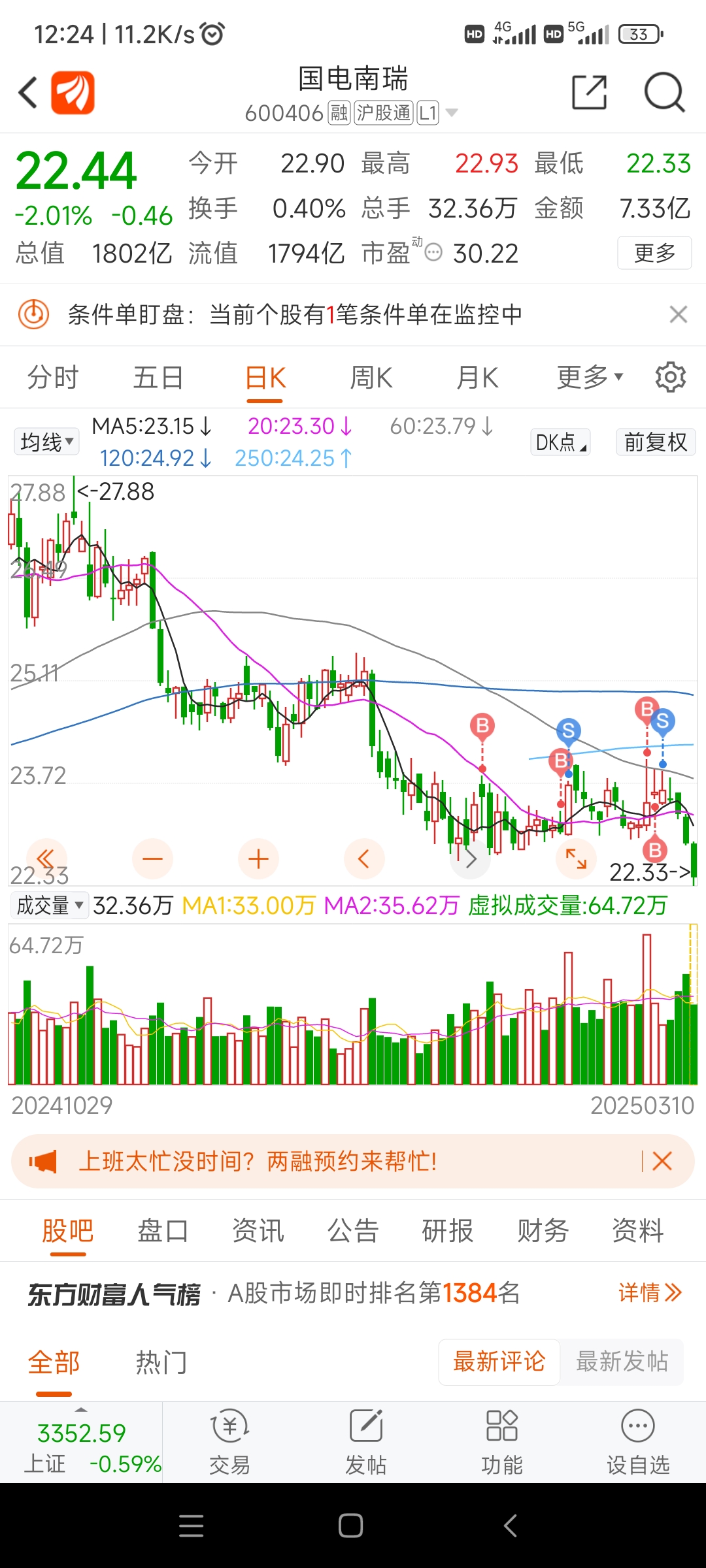 $国电南瑞(SH600406)$ 这里不要接,要么跌到20再考虑轻仓试一手,要么等大阳线反包到回到平台再加仓干。这里不上不下无依无凭接飞刀而已。今天这些伸手的多头,再跌两天就要哇哇叫了