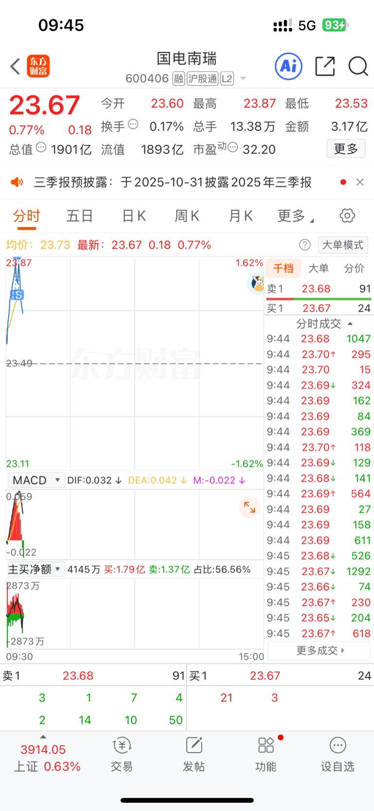 $国电南瑞(SH600406)$ 本以为精准卖出,原来是踏空了