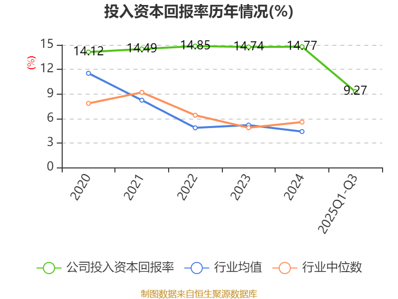 盈利能力方面, 2025年前三季度公司加权平均净资产收益率为9.68%,同比上升0.21个百分点。公司2025年前三季度投入资本回报率为9.27%,较上年同期上升0.4个百分点。