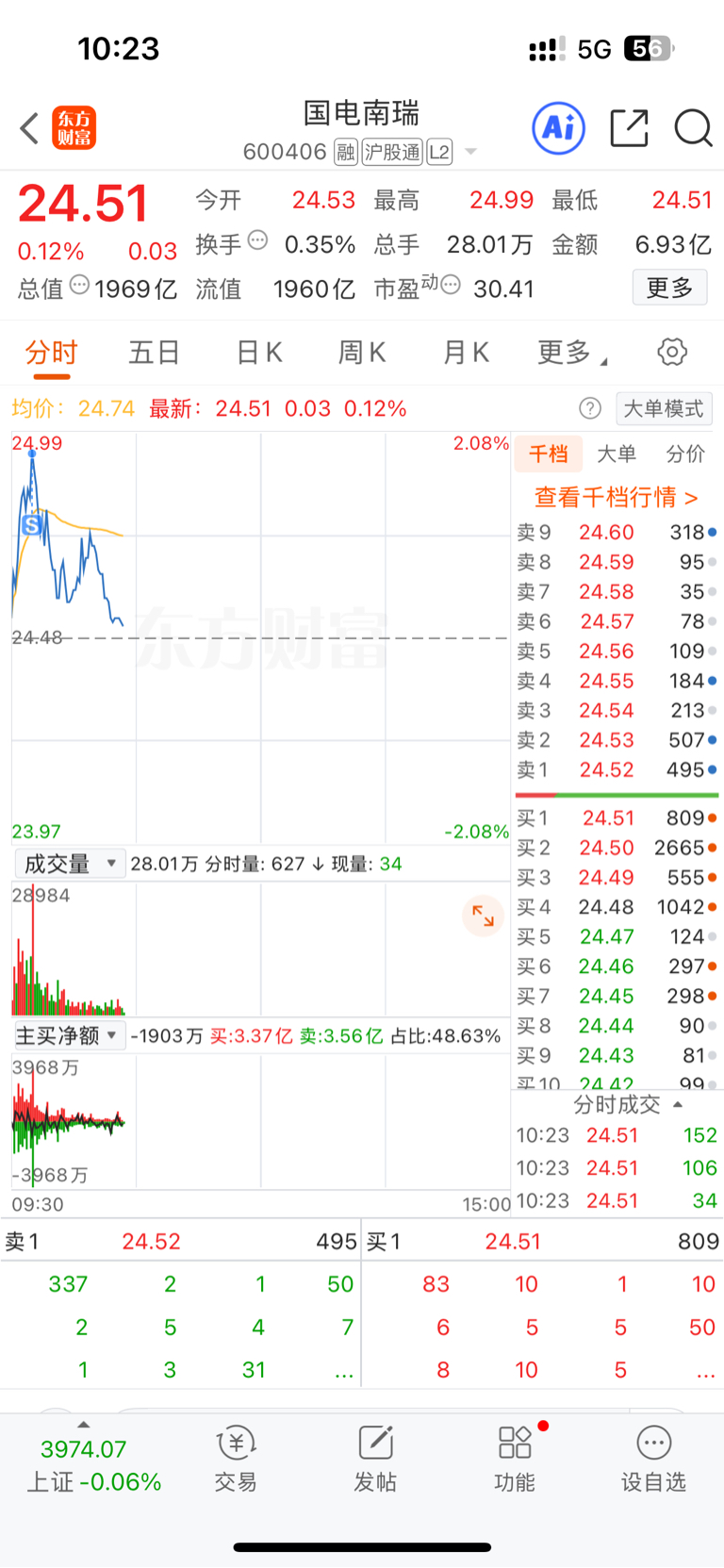 $国电南瑞(SH600406)$ 按照我多月的经验,渣男超过两个点很少,先清仓一波