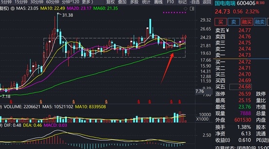 昨日收盘点评国电南瑞月线看自22年1月开始都属于盘震荡,均线逐渐粘合,当前面临方