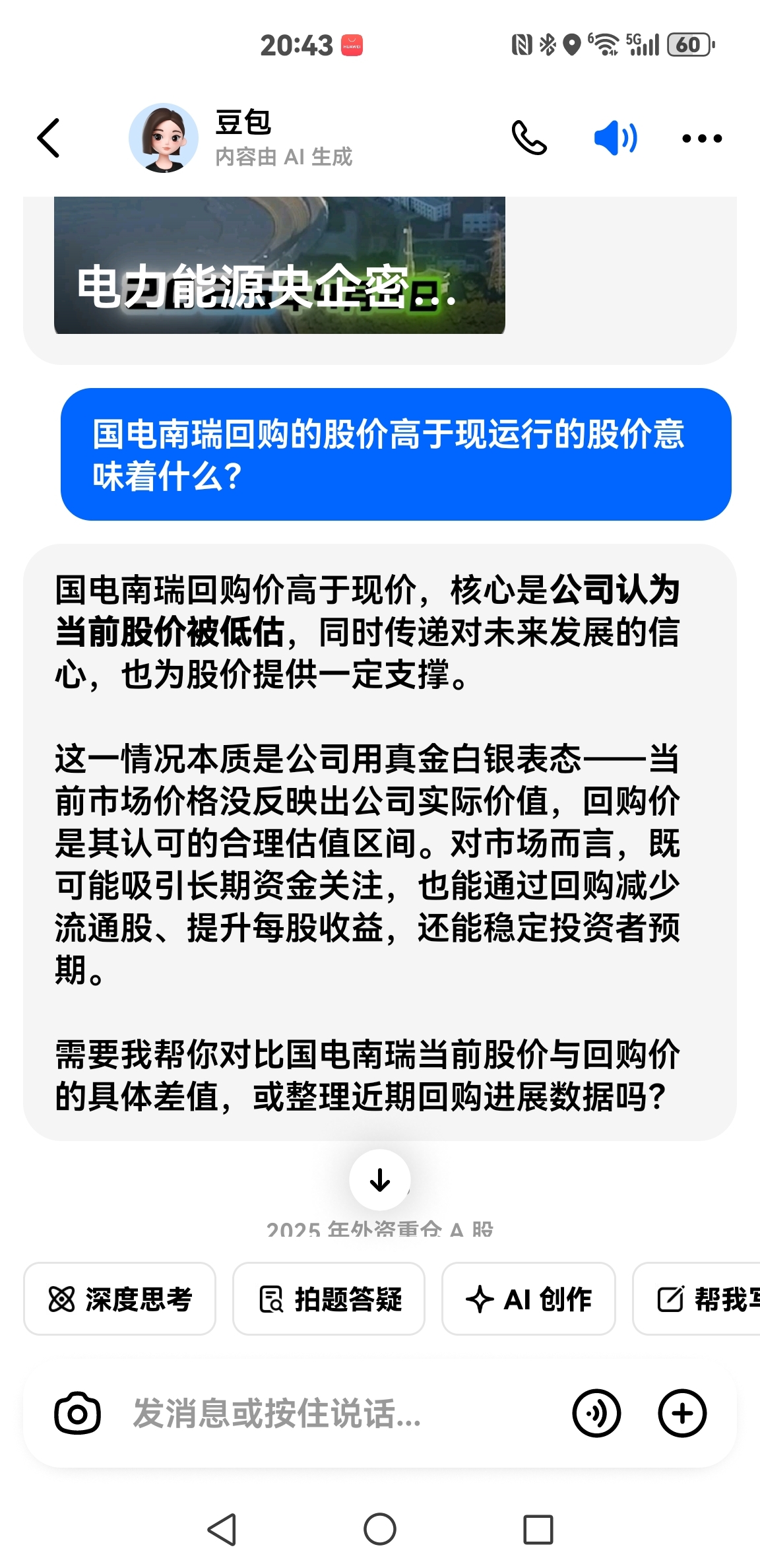 今天收盘国电南瑞25.05元,而回购最高价不超过34.13元,即时是9月30日因派息回购最高股价调整到33.55元,以高于今天的收盘价32%。说明公司认为当前的其股价严重被低估,同时用真金白银表态,对未来市场充满信心。相信国电南瑞未来的潜力,加油。
