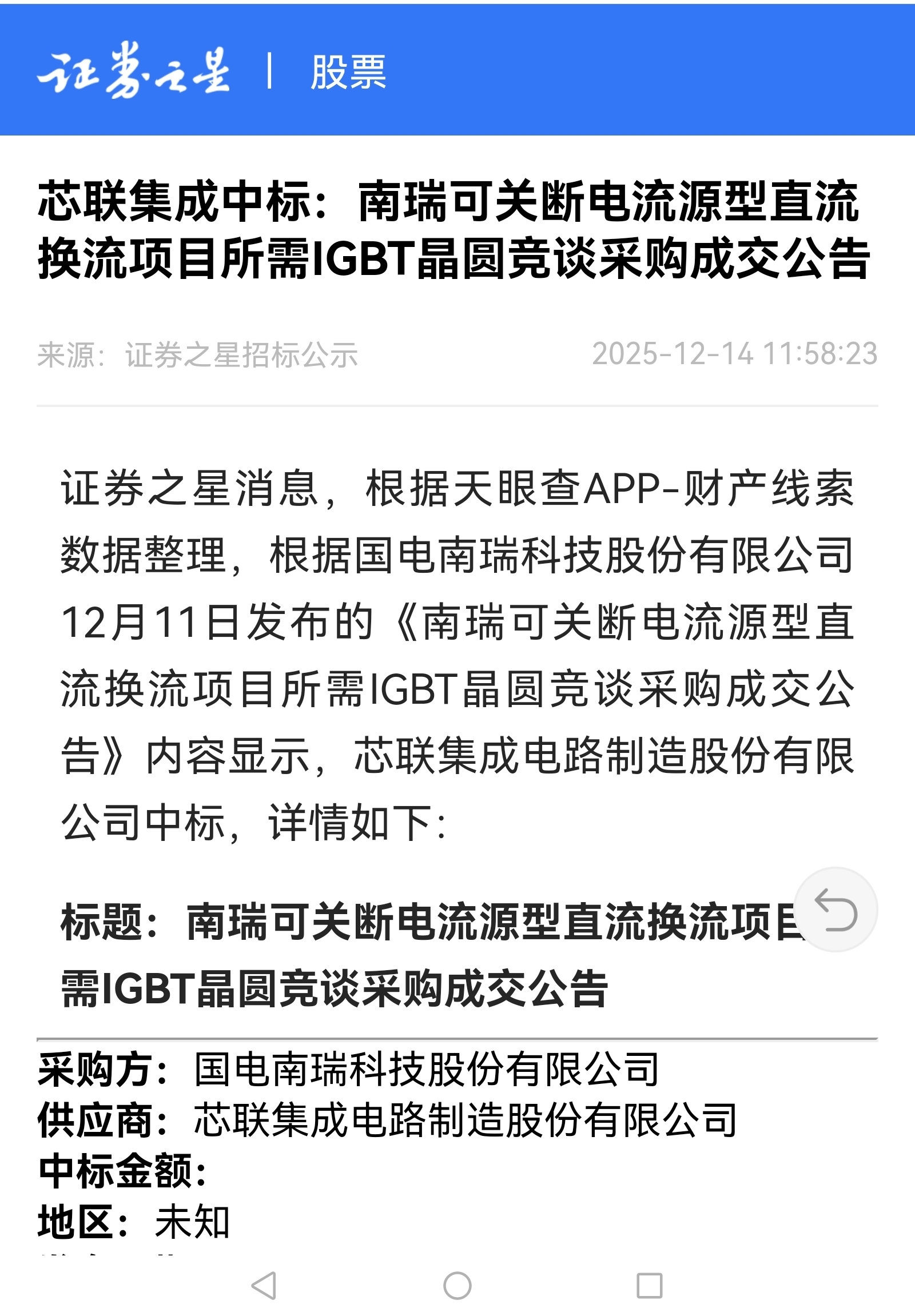 国电南瑞IGBT是芯联集成代工的。