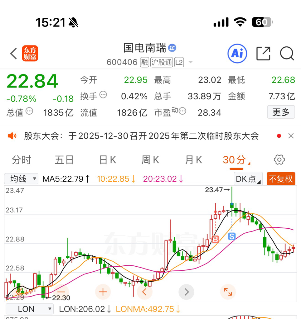 $国电南瑞(SH600406)$ 上不去,快速卖,挣300