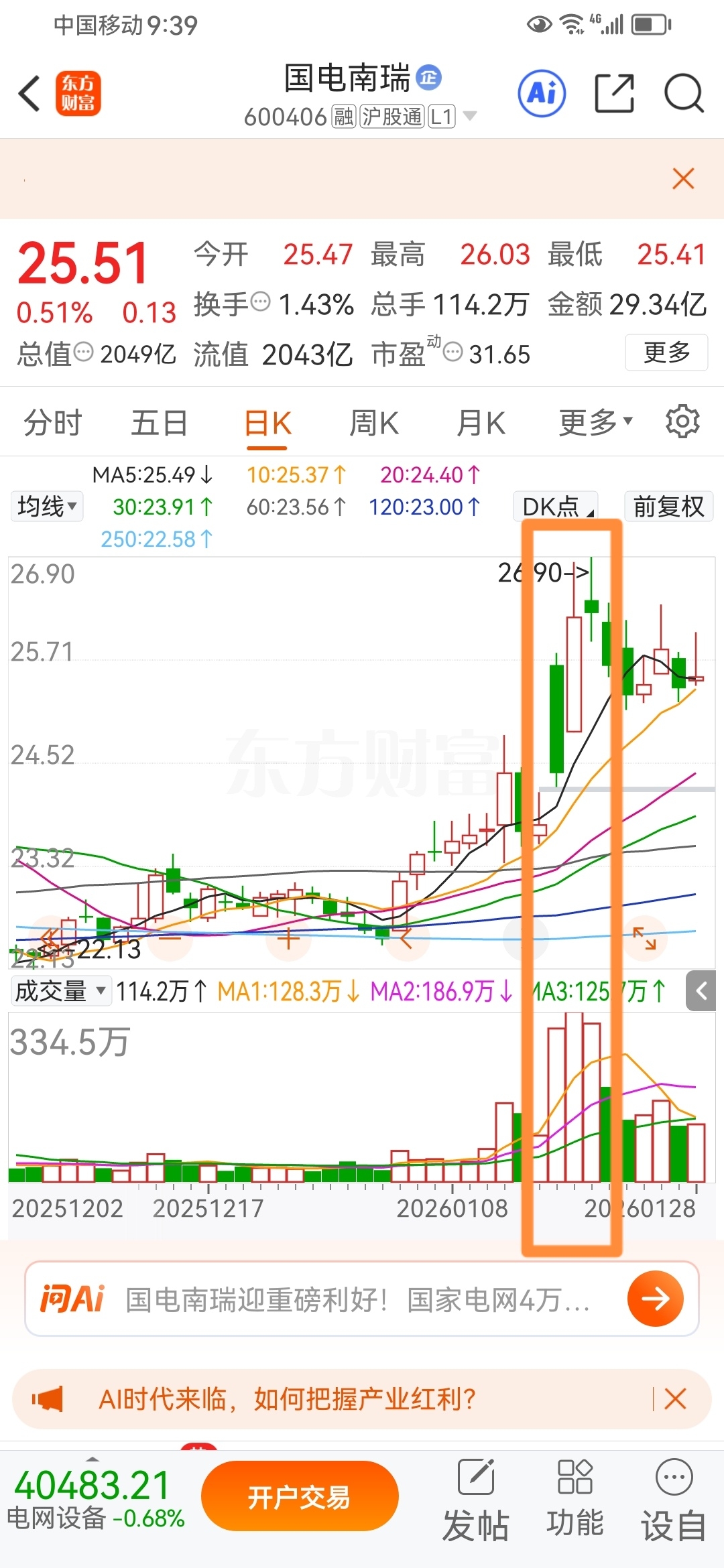 $国电南瑞(SH600406)$ 历史天量到底意欲何为???我查了一下,无论是历史高价31.38那个位置还是历史第二高的29.73那个价位附近,换手筹码都在1个多点。而这三天的换手筹码连续三日超过3个亿。那么谁在买?谁在卖?假如没有散户参与交易都是主力对倒,那主力的筹码可是太多了。这只股票把国家队和一些长期资金,比如汇金和个人战略投资的股票分离出来,实际流通盘不到30个亿。这三天历史天量的换手到底传递了什么信息?是主力入场还是退场?如果主力入场,那么利润空间在哪里?三天的均价在哪里摆着,到目前为止没有获利空间。