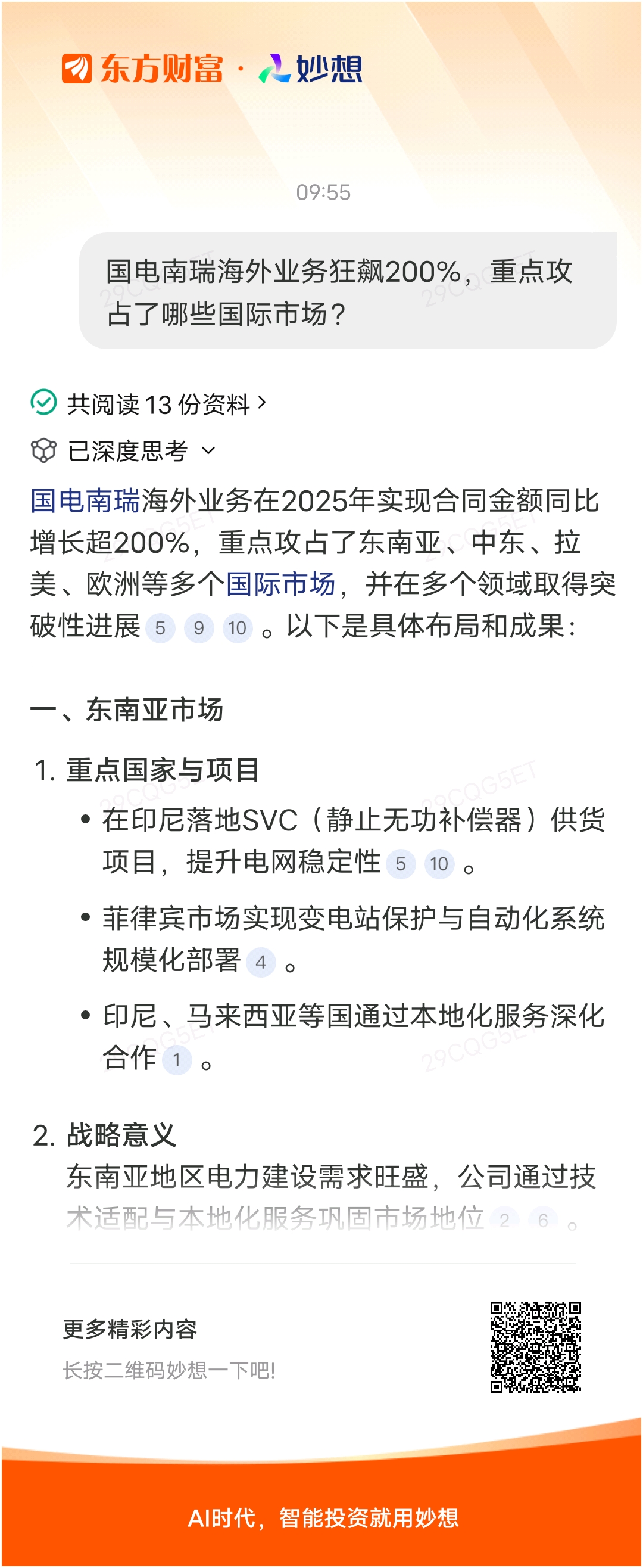 #@妙想,你怎么看?# 妙想一下:国电南瑞海外业务狂飙200%,重点攻占了哪些国际市场?