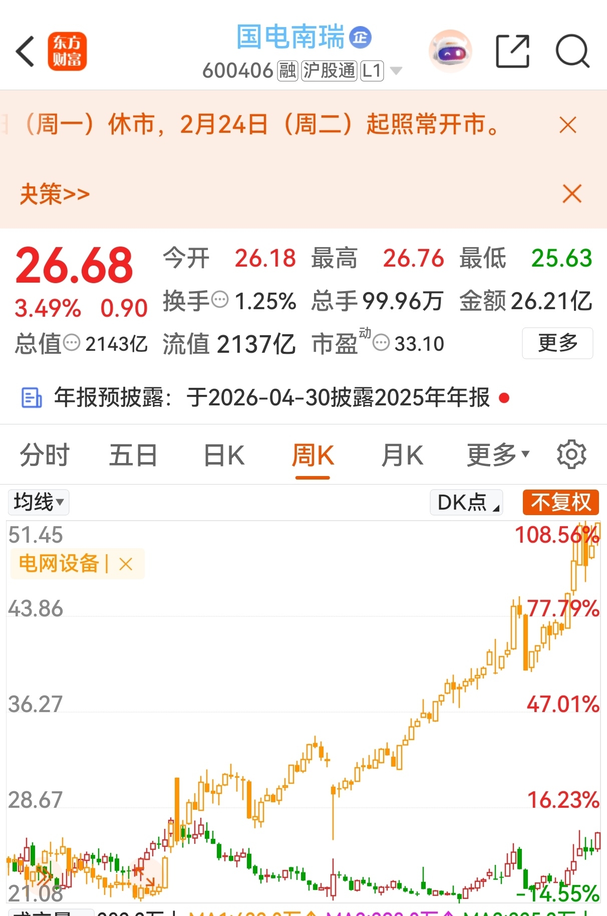 $国电南瑞(SH600406)$ 电网设备股已经涨上了天,他还在底部趴着。