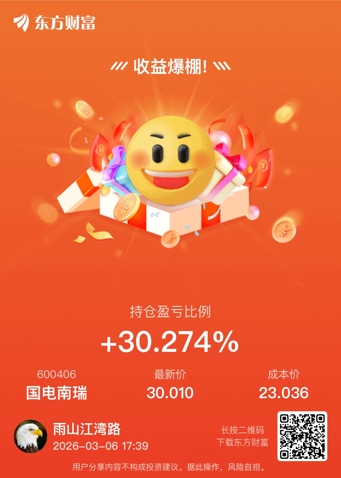 温馨提示: 1.根据《证券法》规定,禁止编造、传播虚假信息或者误导性信息,扰乱证券市场;2.用户在本社区发表的所有资料、言论等仅代表个人观点,与本网站立场无关,不对您构成任何投资建议。用户应基于自己的独立判断,自行决定证券投资并承担相应风险。《东方财富社区管理规定》