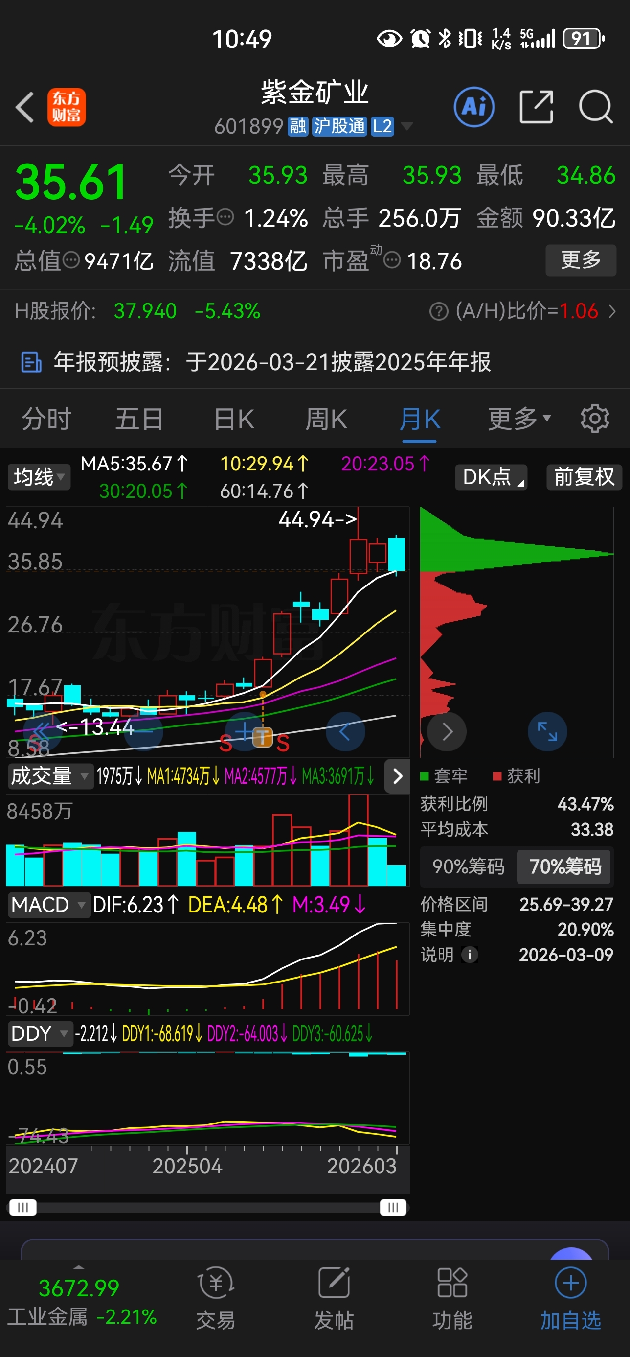 紫金矿业买入的时候走早了,一直涨涨到不敢信。建仓了国电南瑞,这次小散我不走了