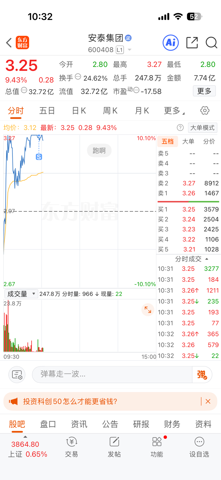 $安泰集团(SH600408)$ 这一波行情我看到10元。你们继续发财,我先走一步