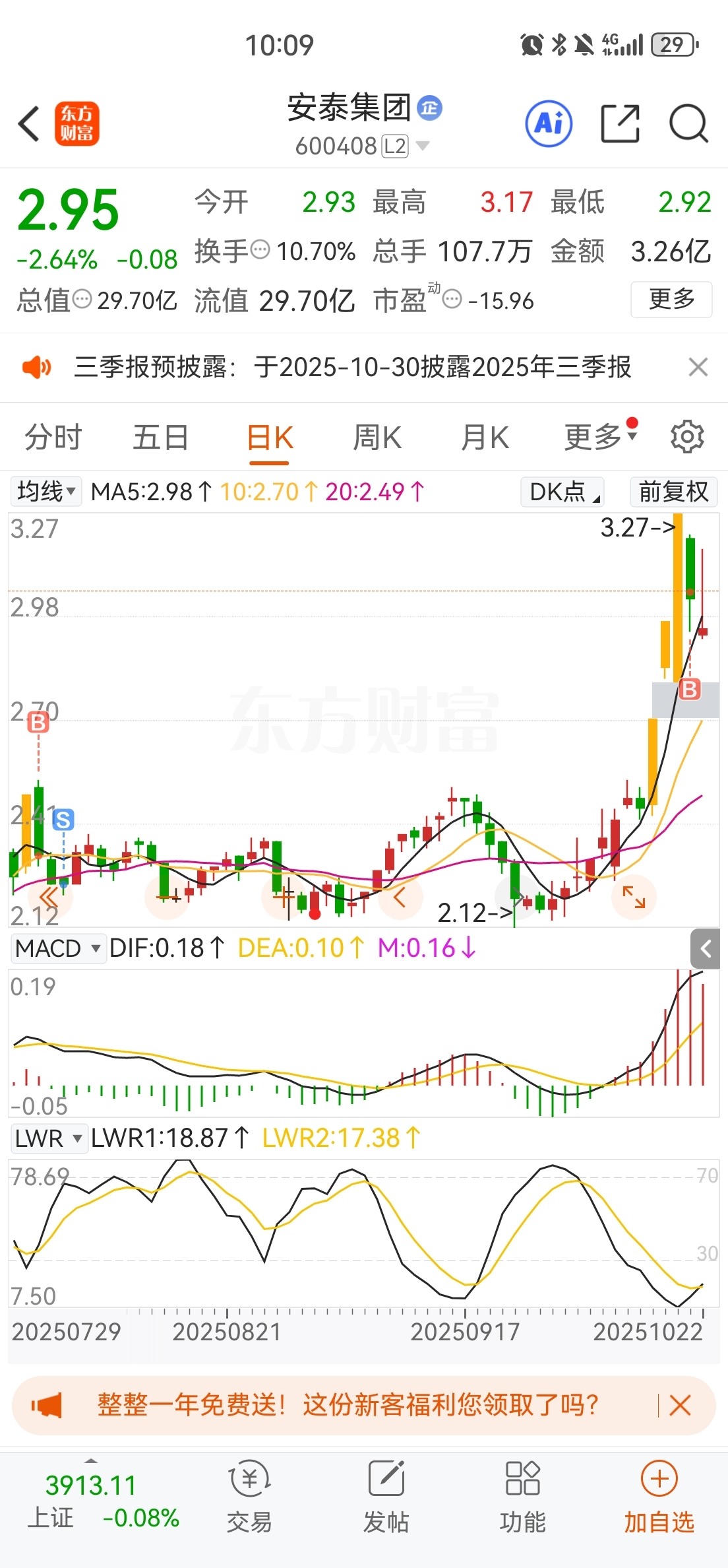 $安泰集团(SH600408)$ 今天收盘要是再亏损,直接黑名单,这票基本就属于垃圾了
