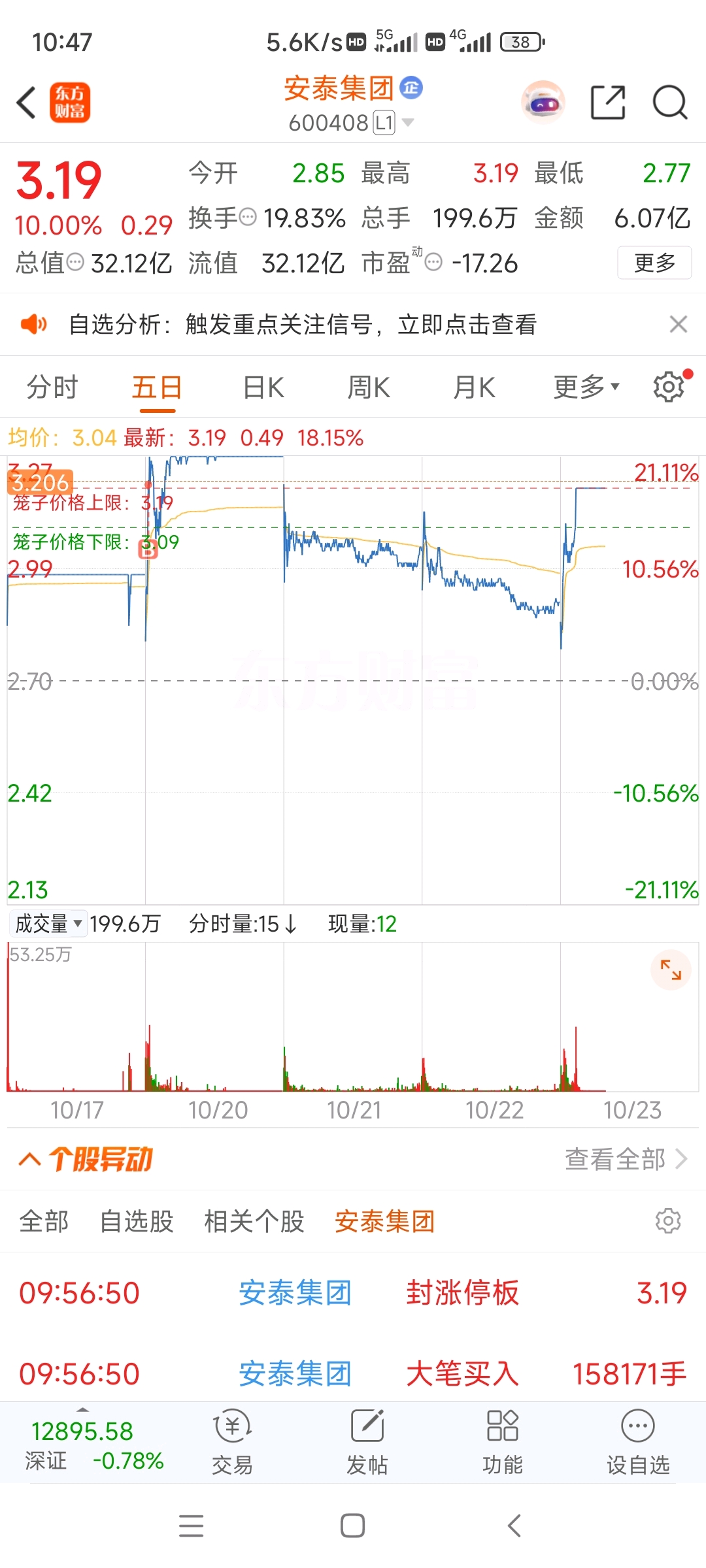 $安泰集团(SH600408)$ 跌几天都没卖,瞬间就回本了,哈哈哈哈