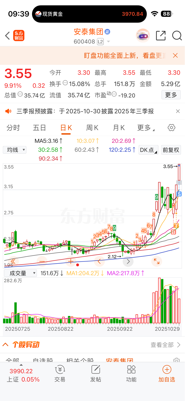 $安泰集团(SH600408)$ 气死我了,设置了个开板卖出,没想到卖掉了