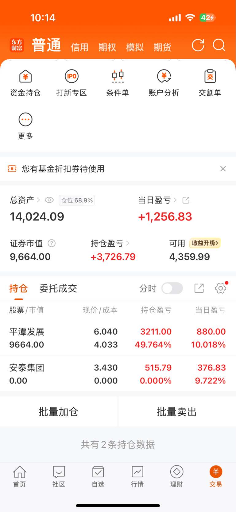 感谢主力,昨天进的,14个点,够了